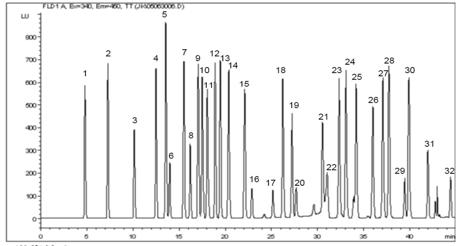 B、HPLC-UV OPA和FMOC衍生分析法 案例32種氨基酸