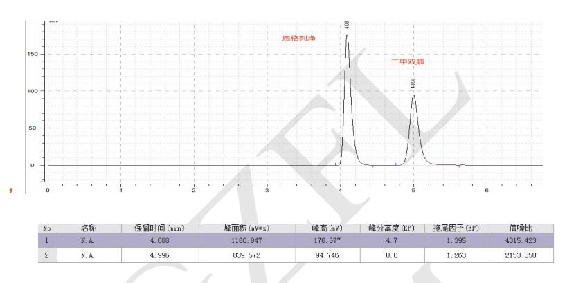 方法說明:二甲雙胍與恩格列凈為常用降糖藥,Comixsil HCS 固定相可在簡單流動相條件下實現(xiàn)對 二者的同時分析。分離度大且柱效良好。